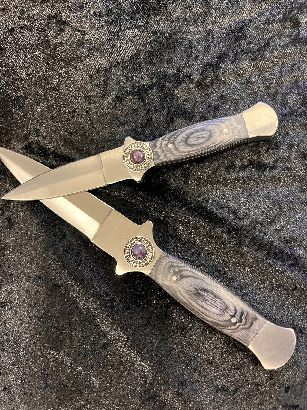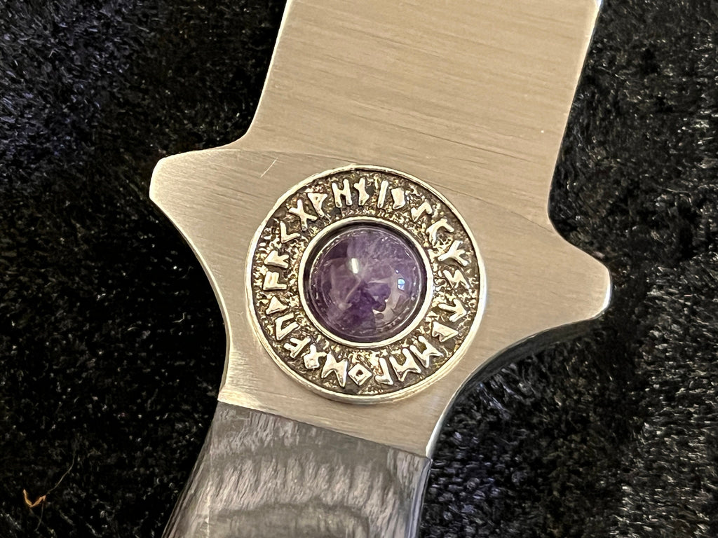 Athame Stainless Steel Black Wood Handle Amethyst Runes Viking Norse Two Sizes